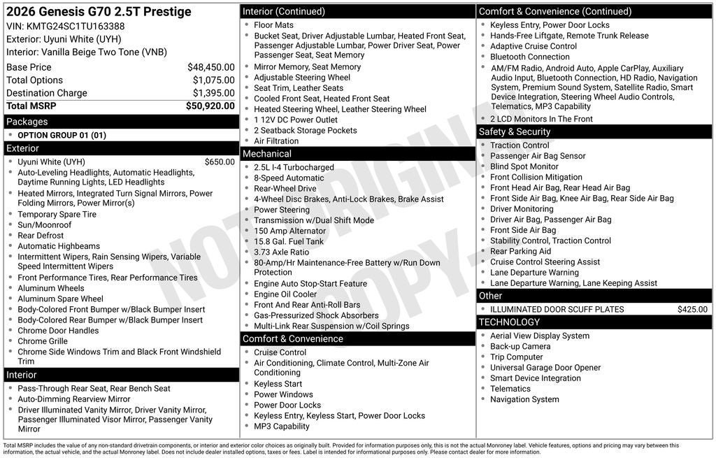 2026 Genesis G70 2.5T Prestige