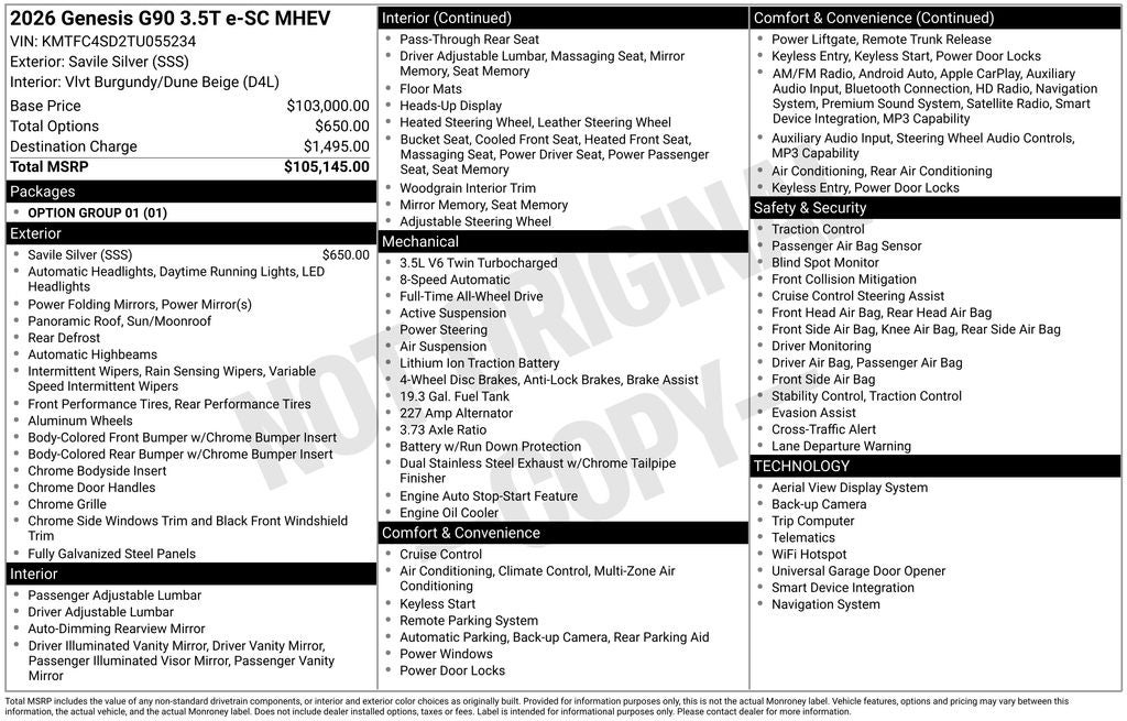 - Radio: AM/FM Bang & Olufsen 3D Prem Audio System -inc: HD radio, navigation system w/12.3" HD screen, SiriusXM radio w/90-day subscription (not available in AK & HI), wireless Apple CarPlay and Android Auto, 23 speakers, 100W x 14 channel (1400W, max, equivalent output), Genesis Connected Services, 300W auxiliary amplifier for 3D sound, Bluetooth® hands-free phone and audio streaming system, USB connectivity and Wi-Fi hotspot