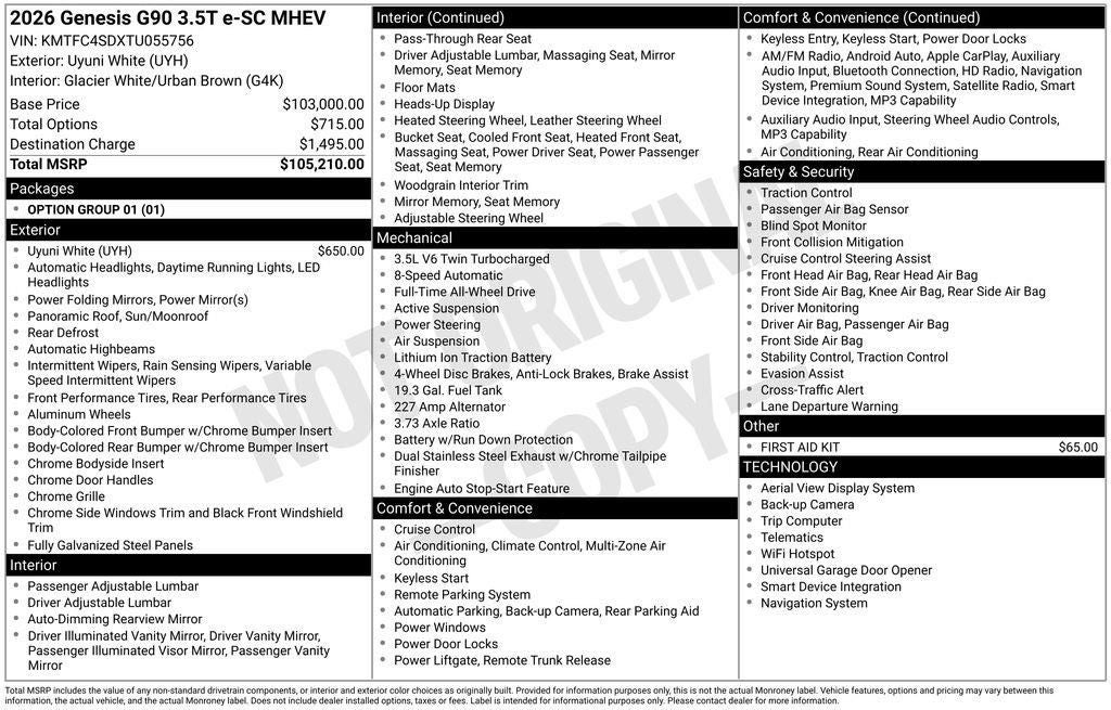 2026 Genesis G90 3.5T e-SC