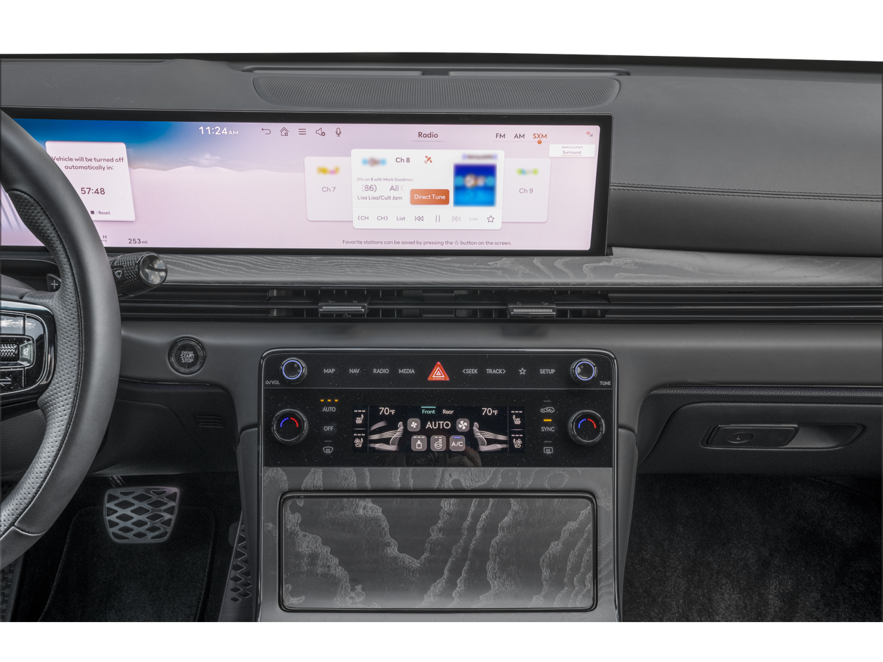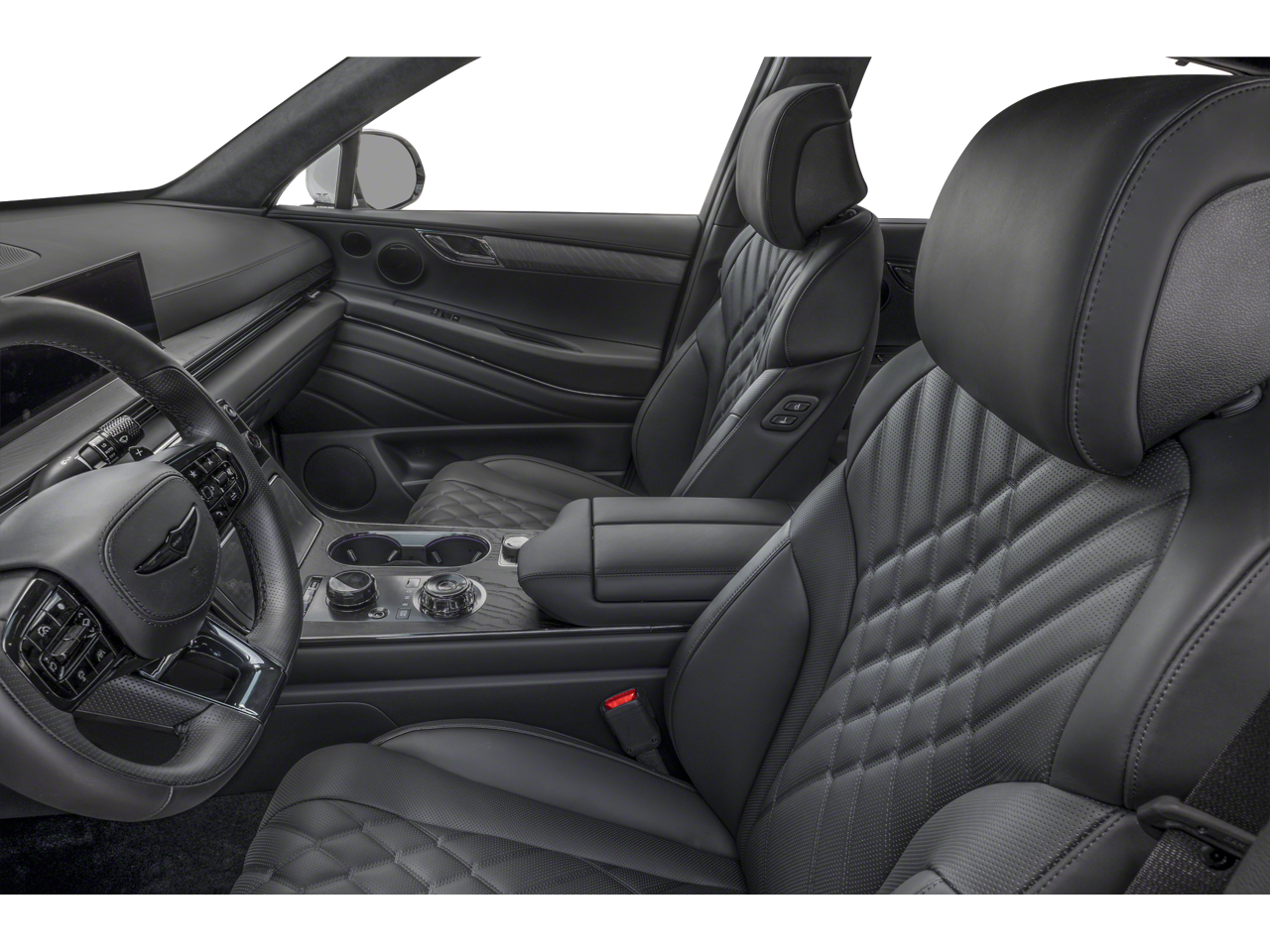 - Radio: AM/FM/HD Bang & Olufsen Premium Audio -inc: 18 speakers, 14-channel amplifier w/1,400 watts max output, 27" integrated OLED screen and navigation system, SiriusXM Radio w/90-day trial subscription (not available in AK or HI), wireless Apple CarPlay and Android Auto, Genesis connected services, Bluetooth® hands-free phone and audio streaming system, Wi-Fi hotspot and USB connectivity