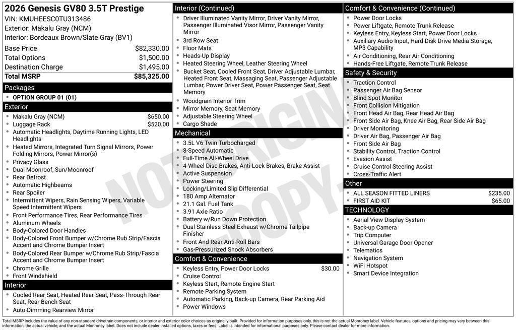 2026 Genesis GV80 3.5T Prestige