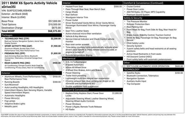 10 Speakers, 19 x 9 Alloy Star-Spoke (Style 212) Wheels, 19 x 9 Alloy Star-Spoke (Style 232) Wheels, 20 x 10 Fr & 20 x 11 Rr Alloy Y-Spoke Wheels, 3-Stage Heated Front Seats, 3.15 Axle Ratio, 4-Wheel Disc Brakes, 4-Zone Climate Control, ABS brakes, Air Conditioning, Alloy wheels, AM/FM radio, Ambiance Lighting, Anthracite Headliner, Anti-Theft AM/FM Stereo CD/MP3 Player, Anti-whiplash front head restraints, Auto tilt-away steering wheel, Automatic temperature control, Automatic-Dimming Power Folding Side-View Mirrors, Automatic-Dimming Rear-View Mirror, BMW Assist with Bluetooth®, Brake assist, Bumpers: body-color, CD player, Combox Controller, Comfort Access Keyless Entry, Dark Bamboo Wood Interior Trim, Delay-off headlights, Digital Compass Mirror, Driver door bin, Driver vanity mirror, Driver's Seat Lumbar Support, Dual front impact airbags, Dual front side impact airbags, DVD-Based Navigation System, Electronic Stability Control, Four wheel independent suspension, Front anti-roll bar, Front Bucket Seats, Front Center Armrest, Front dual zone A/C, Front fog lights, Front reading lights, Fully automatic headlights, Genuine wood console insert, Genuine wood dashboard insert, Genuine wood door panel insert, HD Radio, Head restraints memory, Heated door mirrors, High intensity discharge headlights: Bi-xenon, Illuminated entry, Increased Top Speed Limiter, Integrated 3-Button Universal Garage-Door Opener, Leather Shift Knob, Low tire pressure warning, Memory seat, Nevada Leather Upholstery, Occupant sensing airbag, Online Information Services, Outside temperature display, Overhead airbag, Overhead console, Panic alarm, Passenger door bin, Passenger vanity mirror, Power adjustable front head restraints, Power door mirrors, Power driver seat, Power Liftgate, Power moonroof, Power passenger seat, Power steering, Power windows, Radio data system, Rain sensing wipers, Real Time Traffic Information, Rear anti-roll bar, Rear Manual Side-Window Sunshades, Rear seat center armrest, Rear window defroster, Rear Window Privacy Glass, Rear-View Camera w/Top View, Remote keyless entry, Running Boards, Security system, Shadowline Exterior Trim, SIRIUS Satellite Radio, Soft-Close Automatic Doors, Speed control, Speed-sensing steering, Speed-Sensitive Wipers, Split folding rear seat, Sport Activity Package, Sport Package (330), Sport Seats, Sport steering wheel, Steering wheel memory, Steering wheel mounted A/C controls, Steering wheel mounted audio controls, Storage Package, Tachometer, Telescoping steering wheel, Tilt steering wheel, Traction control, Trip computer, Variably intermittent wipers, Voice-Command, Weather band radio.