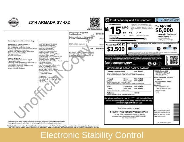 Elevate your driving experience with this well-equipped 2014 Nissan Armada SV. Discover the perfect blend of power, comfort, and capability that will make every journey a true pleasure. Visit our showroom today and let us demonstrate why this SUV should be your next automotive companion.