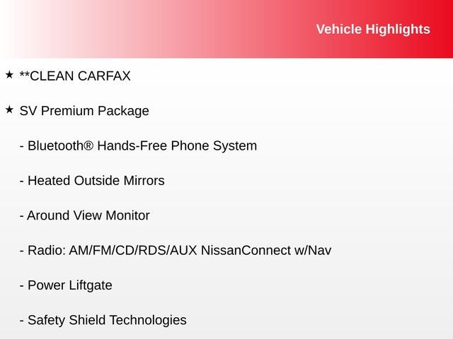 Safety is a top priority in the Rogue SV, with the Safety Shield Technologies suite including blind spot warning, lane-departure warning, and moving object detection. Stay connected with the NissanConnect infotainment system, featuring a 7-inch color touch-screen display, navigation, and voice recognition.