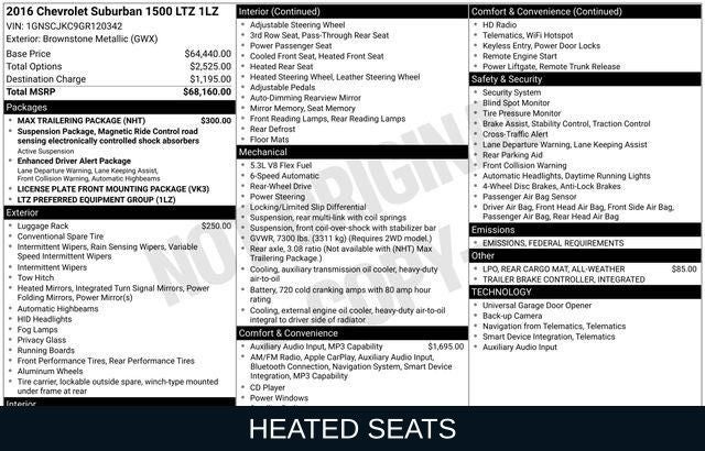 Whether you're embarking on a family adventure, towing a heavy load, or simply seeking a comfortable and capable SUV, this 2016 Chevrolet Suburban LTZ is the perfect choice. With its impressive array of features, powerful performance, and exceptional versatility, it's the ideal vehicle to elevate your driving experience.