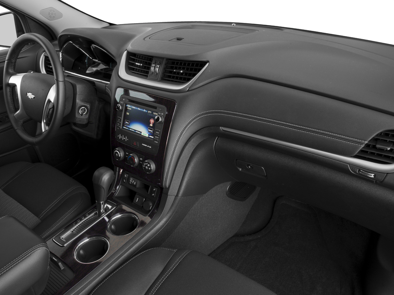 120-Volt 3-Prong Household-Style Power Outlet, 18 x 7.5 Machined Aluminum Wheels, 3.16 Axle Ratio, 3rd row seats: split-bench, 4-Wheel Disc Brakes, 6 Speakers, 7-Passenger Seating (2-2-3 Seating Configuration), 8-Passenger Seating (2-3-3 Seating Configuration), 8-Way Power Driver Seat w/Power Lumbar, ABS brakes, Air Conditioning, Alloy wheels, AM/FM radio: SiriusXM, Bluetooth® For Phone, Body-Color Bodyside Moldings, Body-Color Heated Power-Adjustable Outside Mirrors, Bodyside moldings, Bose 5.1 Surround Sound 10-Speaker System, Brake assist, Bumpers: body-color, CD player, Compass, Delay-off headlights, Driver door bin, Driver vanity mirror, Dual front impact airbags, Dual front side impact airbags, Electronic Stability Control, Emergency communication system: OnStar, Enhanced Driver Information Center, Exterior Parking Camera Rear, Four wheel independent suspension, Front anti-roll bar, Front Bucket Seats, Front Center Armrest w/Storage, Front Fog Lamps, Front fog lights, Front reading lights, Frontal & Side-Impact Airbags, Fully automatic headlights, Heated door mirrors, Illuminated entry, Interior Wood Grain Center Stack & Interior Trim, Leather-Wrapped Steering Wheel, Low tire pressure warning, Occupant sensing airbag, Outside temperature display, Overhead airbag, Panic alarm, Passenger door bin, Passenger vanity mirror, Power door mirrors, Power driver seat, Power steering, Power windows, Preferred Equipment Group 1LT, Premium Cloth Seat Trim, Radio data system, Radio: Chevrolet MyLink w/Rear Seat Entertainment, Radio: Color Touch AM/FM/SiriusXM/CD Player, Rear air conditioning, Rear All-Weather Cargo Mat (LPO), Rear anti-roll bar, Rear Audio System Controls, Rear Entertainment System w/Remote Control, Rear Park Assist, Rear reading lights, Rear seat center armrest, Rear window defroster, Rear window wiper, Remote keyless entry, Remote Vehicle Start, Roof rack: rails only, Security system, SiriusXM Satellite Radio, Speed control, Split folding rear seat, Spoiler, Standard Speaker System, Steering wheel mounted audio controls, Tachometer, Telescoping steering wheel, Tilt steering wheel, Traction control, Traveler's Package, Tri-Zone Automatic Climate Control, Trip computer, Turn signal indicator mirrors, Variably intermittent wipers, Voltmeter, Wheel Locks.
