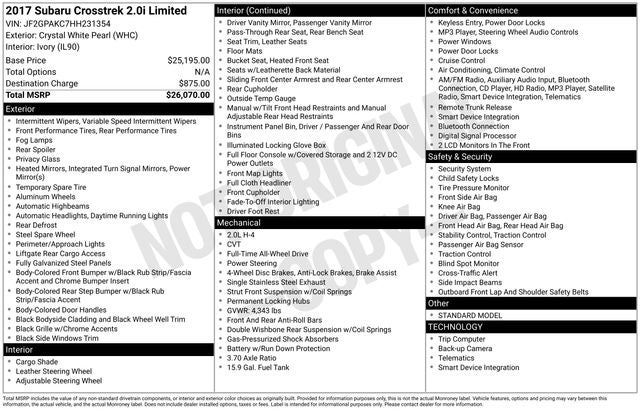 Boasting a 2.0L 16V DOHC engine and Lineartronic CVT, this Crosstrek delivers a smooth, responsive ride while achieving an impressive 26 city/33 highway MPG. Its all-wheel-drive system ensures confident traction and control, whether navigating winding roads or tackling inclement weather.