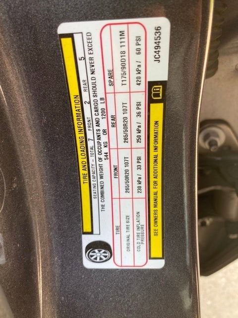 1-Year SiriusXM Radio Service, 2nd Row 60/40 Fold & Tumble Seat, 3.27 Rear Axle Ratio, 3rd Row Seat, 3rd Row Seating Group, 4-Wheel Disc Brakes, 6 Speakers, 7-Passenger Seating, ABS brakes, Air Conditioning, Alloy wheels, AM/FM radio, Anti-whiplash front head restraints, Apple CarPlay/Android Auto, Auto-Dimming Rear-View Mirror, Auto-dimming Rear-View mirror, Auto-leveling suspension, Automatic temperature control, Black Headlamp Bezels, Blacktop Package, Body Color Front Fascia, Body Color Rear Fascia, Body Color Shark Fin Antenna, Body Color Sill Molding, Body Color Wheel Lip Moldings, Brake assist, Bridgestone Brand Tires, Bright Side Roof Rails, Bumpers: body-color, Cloth Low-Back Bucket Seats, Comfort Seating Group, Compass, Delay-off headlights, Delete Roof Rack, Driver door bin, Driver vanity mirror, Dual front impact airbags, Dual front side impact airbags, Dual Rear Exhaust w/Bright Tips, Electronic Stability Control, Emergency communication system: Roadside Assistance/9-1-1 Call, For More Info, Call 800-643-2112, Four wheel independent suspension, Front anti-roll bar, Front Bucket Seats, Front Center Armrest w/Storage, Front dual zone A/C, Front fog lights, Front reading lights, Fully automatic headlights, Gloss Black Badges, Gloss Black Exterior Mirrors, Gloss Black Grille, Heated door mirrors, Illuminated entry, Integrated Roof Rail Crossbars, Knee airbag, Leather steering wheel, LED Daytime Running Headlamps, Low tire pressure warning, No Satellite Coverage HI/AK/PR/VI/GU, Occupant sensing airbag, Outside temperature display, Overhead airbag, Overhead console, Panic alarm, ParkSense Rear Park Assist w/Stop, ParkView Rear Back-Up Camera, Passenger door bin, Passenger vanity mirror, Power 4-Way Driver Lumbar Adjust, Power 8-Way Driver/Manual Passenger Seat, Power door mirrors, Power steering, Power windows, Quick Order Package 2BB, Radio: Uconnect 4 w/7 Display, Rear air conditioning, Rear anti-roll bar, Rear reading lights, Rear seat center armrest, Rear window defroster, Rear window wiper, Remote keyless entry, SiriusXM Satellite Radio, Speed control, Speed-Sensitive Wipers, Split folding rear seat, Spoiler, Steering wheel mounted audio controls, Tachometer, Telescoping steering wheel, Tilt steering wheel, Traction control, Trip computer, Variably intermittent wipers, Wheels: 18 x 8.0 Painted Aluminum, Wheels: 20 x 8.0 Gloss Black Aluminum.