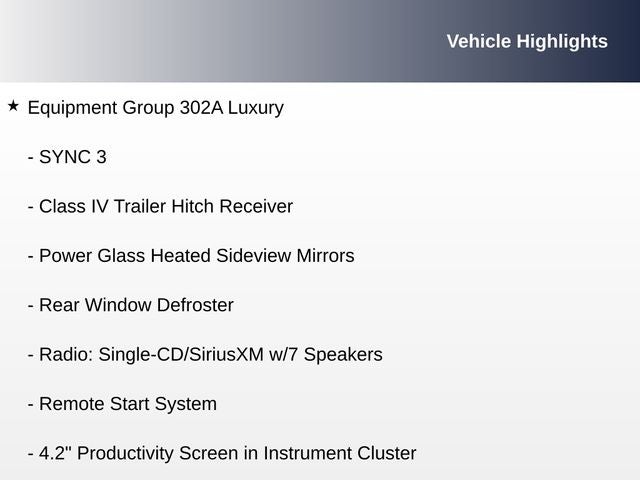 - Luxury Equipment Group 302A with premium audio, navigation, and SYNC 3 connectivity