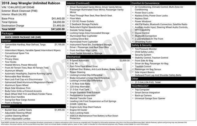Priced below KBB Fair Purchase Price! Black Clearcoat 2018 Jeep Wrangler Unlimited Rubicon 3.6L V6 24V VVT 8-Speed Automatic 4WD