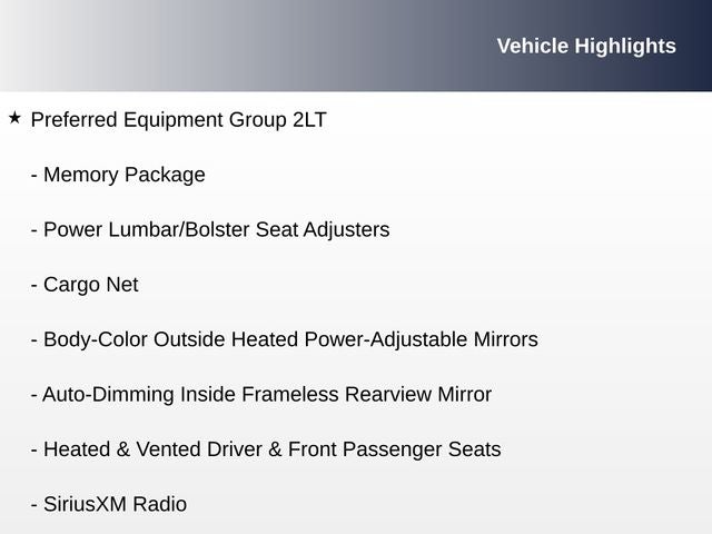 - 2LT interior trim seats, console, door armrests and instrument panel brow in interior color selected