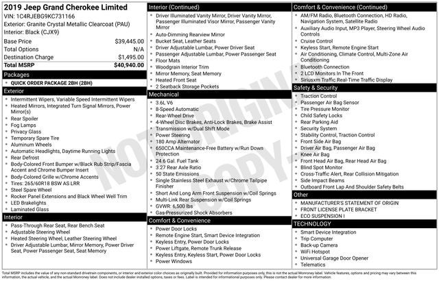 With its striking Gray exterior and well-equipped interior, this 2019 Jeep Grand Cherokee Limited is a true standout in the SUV segment. Experience the perfect blend of capability, technology, and refinement – this Jeep is ready to elevate your driving experience. Visit our showroom today and let us demonstrate why this Grand Cherokee is the perfect fit for your lifestyle.