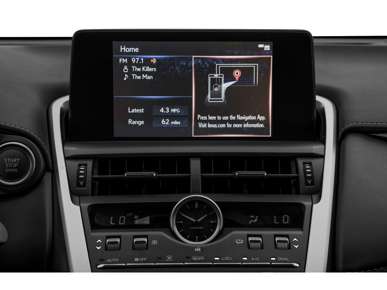 - Radio: AM/FM/CD Lexus Display Audio -inc: 8 speakers, Bluetooth® audio streaming from compatible devices and hands free w/improved voice recognition, full digital power amplifier (class D), integrated SiriusXM satellite radio receiver (90-day All-Access trial subscription included), Scout GPS link w/MapStream mode (complimentary for the first 3 years of ownership), USB/iPod control, home screen can be divided into 1-3 sections (customizable - HVAC, audio, navigation), 8" multimedia screen, enhanced second generation Remote Touch Interface (RTI) w/30 percent larger touchpad, Enform Service Connect w/one-year trial period extended to complimentary for the first 10 years of ownership, my traffic routes; preset frequently, MID data sharing; content from headunit displayed in MID (e.g, song information, NAV turn by turn directions, call info.), dynamic voice recognition, one-shot address entry, embedded voice recognition w/off-board based service; ability to choose voice prompt level (High/Low/Off) steering wheel control of onboard/offboard voice recognition, voice recognition guidance level, hint screens, Cache Radio w/ability to pause live AM/FM/HD Radio, hybrid data service, traffic and weather data provided via HD Radio (free while in HD Radio range), basic traffic maps, weather forecast, Siri Eyes Free mode or Google Assistant (iPhone 4S, iPhone 5/5C/5S), Apple CarPlay and Amazon Alexa