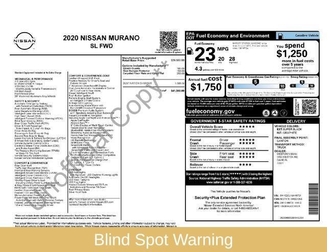 Safety is paramount, and the Murano SL delivers with advanced features like Blind Spot Warning and the Exterior Parking Camera Rear, providing you with added peace of mind on the road.
