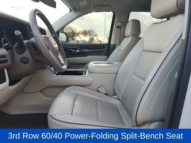 White Frost Tricoat 2021 GMC Yukon Denali RWD 10-Speed Automatic with Overdrive EcoTec3 6.2L V8 12-Way Power Seat Adjusters, 15 Diagonal Multi-Color Head-Up Display, 2 Presets For Outside Rearview Mirrors, 3rd Row 60/40 Power-Folding Split-Bench Seat, Bright Front & Rear Door Sill Plates, Chrome Door Handles w/Body-Color Strip, Dual Exhaust System, Galvano Bodyside Moldings, Hands-Free Power Programmable Rear Liftgate, HD Surround Vision, Heated & Ventilated Driver & Front Passenger Seats, Heated 2nd Row Outboard Position Seats, Heated Automatic Steering Wheel, Heated Driver & Front Passenger Seats, Inside Rear-View Auto-Dimming Mirror, Outside Heated Power-Adjustable Mirrors, Power Release 2nd Row Bucket Seats, Power Tilt & Telescopic Steering Column, Preferred Equipment Group 5SA, Rear Pedestrian Alert, Safety Alert Seat, Universal Home Remote, 14 Speakers, 3.23 Rear Axle Ratio, 3rd row seats: split-bench, 4-Wheel Disc Brakes, ABS brakes, Adaptive suspension, Air Conditioning, Alloy wheels, AM/FM radio: SiriusXM with 360L, Apple CarPlay/Android Auto, Auto High-beam Headlights, Auto-dimming door mirrors, Auto-dimming Rear-View mirror, Auto-leveling suspension, Automatic Emergency Braking, Automatic temperature control, Bodyside moldings, Bose 14-Speaker Surround w/CenterPoint, Brake assist, Bumpers: body-color, Compass, Delay-off headlights, Driver door bin, Driver vanity mirror, Dual front impact airbags, Dual front side impact airbags, Electronic Stability Control, Emergency communication system: OnStar and GMC connected services capable, Following Distance Indicator, Forward Collision Alert, Four wheel independent suspension, Front & Rear Park Assist, Front anti-roll bar, Front Bucket Seats, Front Center Armrest, Front dual zone A/C, Front fog lights, Front Pedestrian Braking, Front reading lights, Fully automatic headlights, Garage door transmitter, HD Radio, Heads-Up Display, Heated door mirrors, Heated front seats, Heated rear seats, Heated steering wheel, Illuminated entry, IntelliBeam Automatic High Beam On/Off, Lane Change Alert w/Side Blind Zone Alert, Lane Keep Assist w/Lane Departure Warning, Leather steering wheel, License Plate Front Mounting Package, Low tire pressure warning, Magnetic Ride Control Suspension, Memory seat, Navigation System, Not Equipped w/Automatic Stop/Start, Not Equipped w/Steering Column Lock, Occupant sensing airbag, Outside temperature display, Overhead airbag, Overhead console, Panic alarm, Passenger door bin, Passenger vanity mirror, Perforated Leather Seating Surfaces, Power door mirrors, Power driver seat, Power Liftgate, Power passenger seat, Power steering, Power windows, Radio: AM/FM/SiriusXM w/Navigation, Rain sensing wipers, Rear air conditioning, Rear anti-roll bar, Rear Cross Traffic Alert, Rear reading lights, Rear window defroster, Rear window wiper, Remote keyless entry, Roof rack: rails only, Security system, SiriusXM w/360L, Speed control, Speed-sensing steering, Split folding rear seat, Spoiler, Steering wheel memory, Steering wheel mounted audio controls, Tachometer, Telescoping steering wheel, Tilt steering wheel, Traction control, Trip computer, Turn signal indicator mirrors, Variably intermittent wipers, Ventilated front seats, Voltmeter, Wheels: 20 x 9 6-Spoke Polished Aluminum, 12-Way Power Seat Adjusters, 15 Diagonal Multi-Color Head-Up Display, 2 Presets For Outside Rearview Mirrors, 3rd Row 60/40 Power-Folding Split-Bench Seat, Bright Front & Rear Door Sill Plates, Chrome Door Handles w/Body-Color Strip, Dual Exhaust System, Galvano Bodyside Moldings, Hands-Free Power Programmable Rear Liftgate, HD Surround Vision, Heated & Ventilated Driver & Front Passenger Seats, Heated 2nd Row Outboard Position Seats, Heated Automatic Steering Wheel, Heated Driver & Front Passenger Seats, Inside Rear-View Auto-Dimming Mirror, Outside Heated Power-Adjustable Mirrors, Power Release 2nd Row Bucket Seats, Power Tilt &