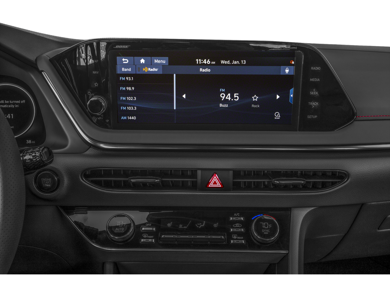 - Radio: AM/FM/MP3/HD/SiriusXM Display Audio w/Nav -inc: 10.25" color touchscreen, highway drive assist, integrated Bluetooth®, Blue Link connected car system, Apple CarPlay, Android Auto, USB charge port, diversity antenna for navigation and HERE HD traffic
