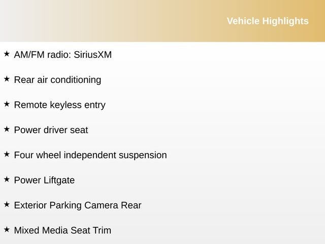 • Stay connected with SiriusXM radio, Apple CarPlay/Android Auto, and the Exterior Parking Camera Rear.