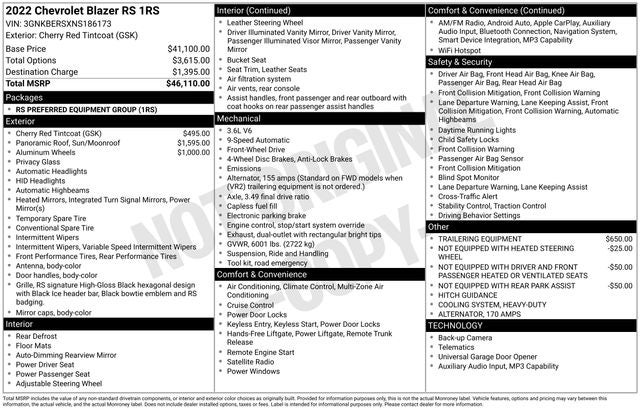 As a CARFAX 1-Owner vehicle with a clean history report, this 2022 Chevrolet Blazer RS is a true gem. Backed by Chevrolet's commitment to quality, this SUV has been meticulously maintained and is ready to provide you with years of reliable service.