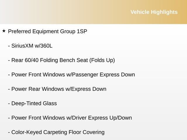 - Convenience Package includes (CJ2) dual-zone automatic climate control, (A2X) 10-way power driver seat including power lumbar, (KA1) heated driver and passenger seats, (NP5) leather-wrapped steering wheel, (KI3) heated steering wheel, (N37) manual tilt/telescoping steering column, (KI4) 120-volt power outlet, (KC9) 120-volt bed-mounted power outlet, (UBI) 2 charge-only USB ports for second row, (C49) rear-window defogger, (AVJ) Keyless Open and Start, (BTV) Remote Start and (UTJ) content theft alarm. (Upgradeable to (A50) bucket seats and includes (D07) center console. Vehicles built prior to 3-14-2022 and after 4-24-2022 include heated driver and front outboard passenger seats. Certain vehicles built on or after 3-14-2022 through 4-24-2022 will be forced to include (00V) Not Equipped with Heated or Ventilated Front Seats, which removes heated front seats. Vehicles equipped with (00V) Not Equipped with Heated or Ventilated Front Seats will be eligible for later dealer retrofit to enable functionality. Certain vehicles built prior to 3-28-2022 may be forced to include (00G) Not Equipped with Heated Steering Wheel, which removes the heated steering wheel. See dealer for details or the window label for the features on a specific vehicle.)