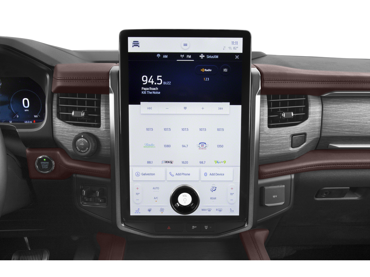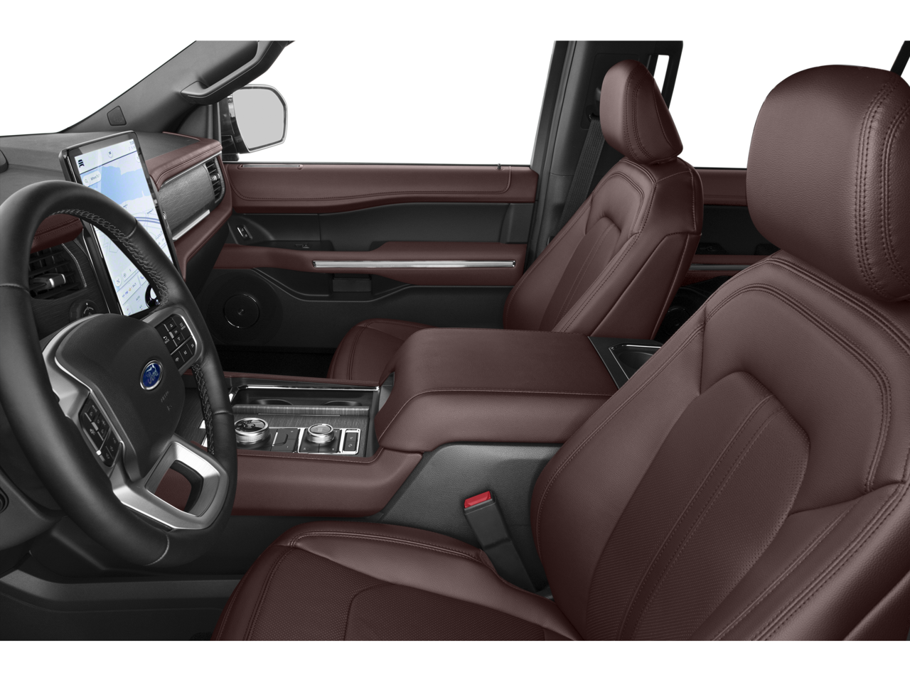 The interior of this Expedition Max is a true sanctuary, with premium leather-trimmed and heated/ventilated front captain's chairs, a heated steering wheel, and a host of advanced technology features. The SYNC 4 infotainment system with Connected Navigation, 12-speaker B&O sound system, and SiriusXM with 360L provide a truly immersive driving experience.