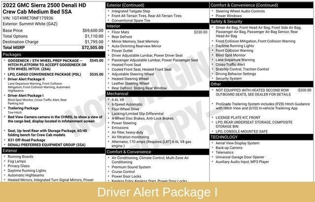 Elevate your driving experience with the Sierra 2500HD Denali's impressive array of premium features. Enjoy the convenience of hands-free connectivity, the security of advanced safety technologies, and the ultimate in comfort and style. Whether you're hauling heavy equipment, towing a large trailer, or exploring the great outdoors, this Denali model is engineered to handle it all with uncompromising capability.