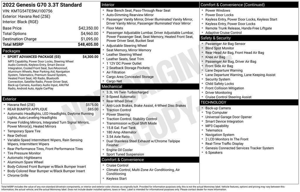 - Vehicle Name: Genesis G70
