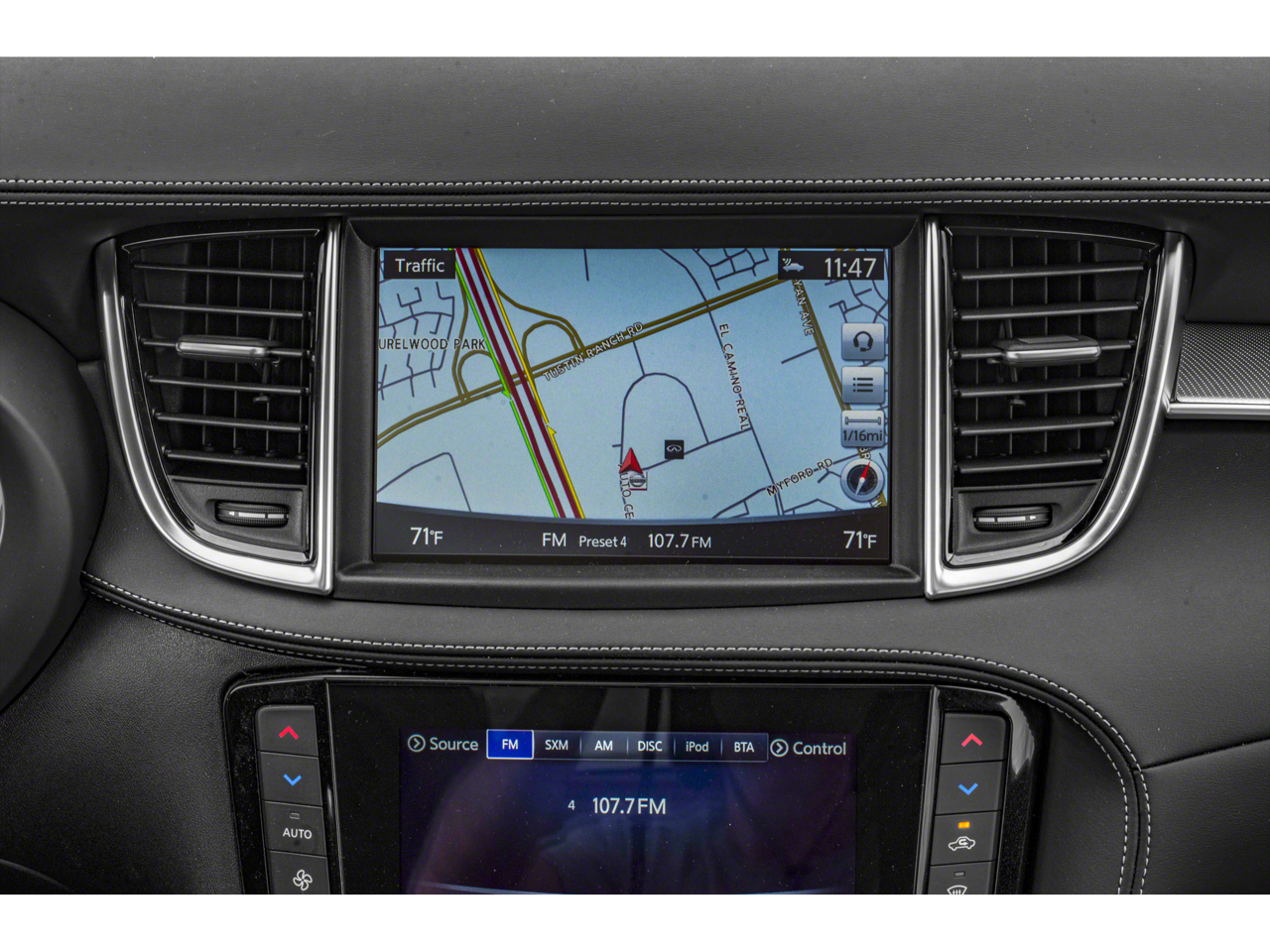 - Radio: HD Audio System -inc: INFINITI InTouch, INFINITI InTouch services, INFINITI InTouch dual display system w/upper 8" and lower 7" HD touch screens, wireless Apple CarPlay, Android Auto, SiriusXM radio w/advanced audio features and 90-day complimentary trial, INFINITI voice recognition, Siri Eyes Free, Wi-Fi hotspot and active noise cancellation