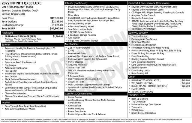 2022 INFINITI QX50 LUXE