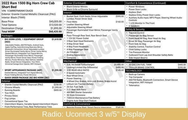 - Radio: Uconnect 3 w/5" Display