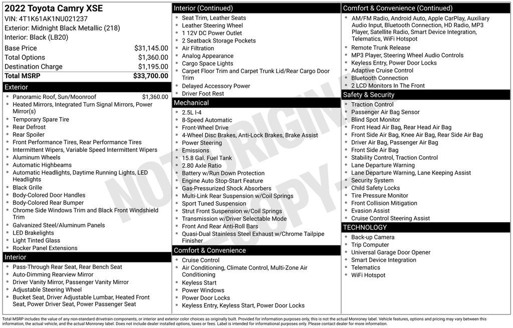 If provided, Advertised Price EXCLUDES all optional dealer offered items, accessories, or product addendums optionally selected by the purchaser, applicable official taxes, charges and fees, and a $436 documentation fee. By submitting your information, you consent to receive all forms of communication including but not limited to phone, text, email, mail, etc. Message and data rates may apply. Consent to these terms is not a condition of purchase. You may opt out at any time. MPG based on model year EPA mileage ratings. Use for comparison purposes only. Incentives may be available to all of the general public, or may have certain conditions, such as being financed through a required specific lender, call Dealer for details. Certain used vehicles may be subject to important Wholesale to the Public disclosures provided to you prior to purchase; please consider carefully before your purchase decision. The Lifetime Limited Powertrain Warranty is offered on select vehicle makes and models. Not all vehicles qualify. Ask your dealership sales representative for details.