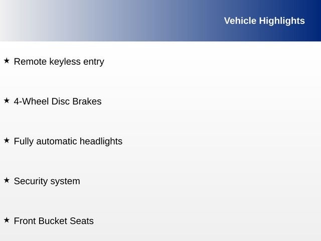 • Remote Keyless Entry w/Integrated Key Transmitter, Illuminated Entry, Illuminated Ignition Switch and Panic Button