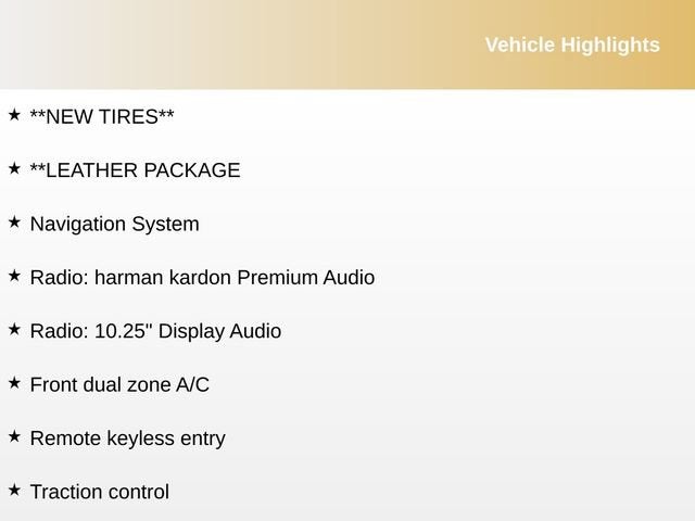 POWER SEAT(S), LEATHER, LANE ASSIST/BLIND SPOT MONITOR, Bluetooth®, BACK UP CAMERA, ALLOY WHEELS, 360 DEGREE CAMERA, BACKUP CAMERA, ANDROID AUTO/ APPLE CARPLAY, REMOTE START, FORWARD COLLISION ALERT, FRONT PEDESTRIAN BRAKING, KEYLESS ENTRY, BLIND SPOT MONITOR, LANE DEPARTURE WARNING SYSTEM, LANE KEEP ASSIST, PRE-COLLISION BRAKING SYSTEM, 2 SETS OF SMART KEYS, PREMIUM SOUND, WE DELIVER ANYWHERE, SMART DEVICE INTEGRATION, KEYLESS IGNITION, 18 x 7.5J Alloy Wheels, Front dual zone A/C, Remote keyless entry, 4-Wheel Disc Brakes, 6 Speakers, ABS brakes, Air Conditioning, Alloy wheels, AM/FM radio: SiriusXM, Apple CarPlay & Android Auto, Auto High-beam Headlights, Automatic temperature control, Brake assist, Bumpers: body-color, Cloth & SynTex Seat Trim, Delay-off headlights, Driver door bin, Driver vanity mirror, Dual front impact airbags, Dual front side impact airbags, Electronic Stability Control, Emergency communication system, Exterior Parking Camera Rear, Four wheel independent suspension, Front anti-roll bar, Front Bucket Seats, Front Center Armrest, Front fog lights, Front reading lights, Fully automatic headlights, Heated door mirrors, Illuminated entry, Leather Shift Knob, Leather steering wheel, Low tire pressure warning, Navigation System, Occupant sensing airbag, Outside temperature display, Overhead airbag, Overhead console, Panic alarm, Passenger door bin, Passenger vanity mirror, Power door mirrors, Power steering, Power windows, Radio data system, Radio: 10.25 Display Audio, Radio: harman kardon Premium Audio, Rear anti-roll bar, Rear seat center armrest, Rear window defroster, Security system, Speed control, Split folding rear seat, Spoiler, Sport steering wheel, Steering wheel mounted audio controls, SynTex Seat Trim, Tachometer, Telescoping steering wheel, Tilt steering wheel, Traction control, Trip computer, Turn signal indicator mirrors, Variably intermittent wipers, NO ADD ONS, **Backup Camera, **SERVICED HERE**, **ORIGINALLY PURCHASED FROM ALL STAR!**, **NON SMOKER VEHICLE**, **NEW TIRES**, **LEATHER PACKAGE, 18 x 7.5J Alloy Wheels, Front dual zone A/C, Remote keyless entry.