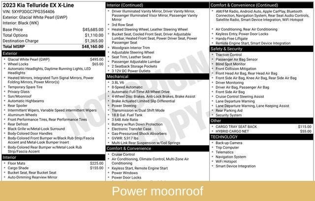 Beyond its impressive performance, the Telluride EX X-Line is packed with an array of premium amenities and advanced technology features. Enjoy the convenience of Smart Key with Push Button and Remote Start, as well as the comfort of Heated and Ventilated Front Bucket Seats and a Heated Steering Wheel. The Leather Seat Trim and Leather Steering Wheel add a touch of elegance, while the Power Liftgate and Cargo Cover provide effortless access and organization.