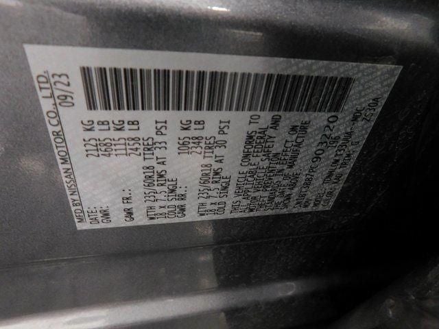 **ANDROID AUTO, **ALLOY WHEELS, **APPLE CARPLAY, **Bluetooth®, **BACK UP CAMERA, **BLIND SPOT MONITORS, **CROSS TRAFFIC ALERT, **CRUISE CONTROL, **LANE DEPARTURE WARNING, **REAR SONAR, **FORWARD COLLISION WARNING, Automatic temperature control, Delay-off headlights, NissanConnect featuring Apple CarPlay and Android Auto, Panic alarm, Power driver seat, Power windows, Rear Parking Sensors, Remote keyless entry, Steering wheel mounted audio controls, 18 Aluminum Alloy Wheels, 4-Wheel Disc Brakes, 5.604 Axle Ratio, 6 Speakers, ABS brakes, Active Cruise Control, Air Conditioning, Alloy wheels, AM/FM Radio, AM/FM radio: SiriusXM, Auto High-beam Headlights, Brake assist, Bumpers: body-color, Cloth Seat Trim, Driver door bin, Driver vanity mirror, Dual front impact airbags, Dual front side impact airbags, Electronic Stability Control, Emergency communication system: NissanConnect Services, First Aid Kit, Floor Mats w/1-Piece Cargo Area Protector, Four wheel independent suspension, Front anti-roll bar, Front Bucket Seats, Front Center Armrest, Front dual zone A/C, Front reading lights, Fully automatic headlights, Heated door mirrors, Illuminated entry, Knee airbag, Low tire pressure warning, Occupant sensing airbag, Outside temperature display, Overhead airbag, Overhead console, Passenger door bin, Passenger vanity mirror, Power door mirrors, Power steering, Radio data system, Rear anti-roll bar, Rear seat center armrest, Rear side impact airbag, Rear window defroster, Rear window wiper, Speed control, Speed-Sensitive Wipers, Split folding rear seat, Spoiler, Tachometer, Telescoping steering wheel, Tilt steering wheel, Traction control, Trip computer, Variably intermittent wipers, **SERVICED HERE**, Automatic temperature control, Delay-off headlights, NissanConnect featuring Apple CarPlay and Android Auto, Panic alarm, Power driver seat, Power windows, Rear Parking Sensors, Remote keyless entry, Steering wheel mounted audio controls.