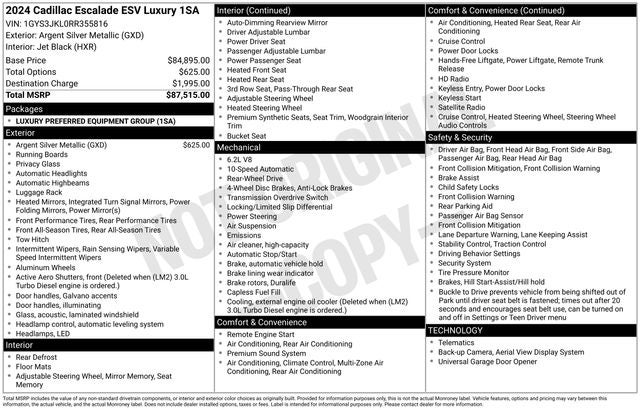Experience the pinnacle of luxury and performance with this 2024 Cadillac Escalade ESV Luxury. Visit our showroom today and let us demonstrate how this exceptional vehicle can elevate your driving experience.