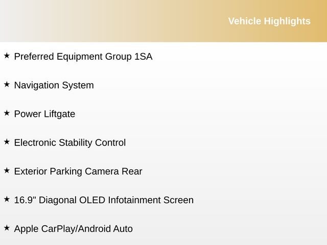 - OLED Infotainment experience with navigation AM/FM/SiriusXM with 360L with 16.9" diagonal color information display (displays and controls navigation, music and all features and functions of the vehicle), personalized profiles for each driver's settings, Natural Voice Recognition, Phone Integration for Wireless Apple CarPlay/Wireless Android Auto capability for compatible phone, Connected Apps and Teen Driver