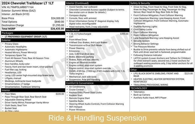 Discover the perfect blend of style, performance, and technology in the 2024 Chevrolet TrailBlazer LT. Experience the confidence and convenience that this SUV offers, and let it elevate your driving experience to new heights. Visit our showroom today and let us demonstrate how this exceptional vehicle can enhance your life on the road.