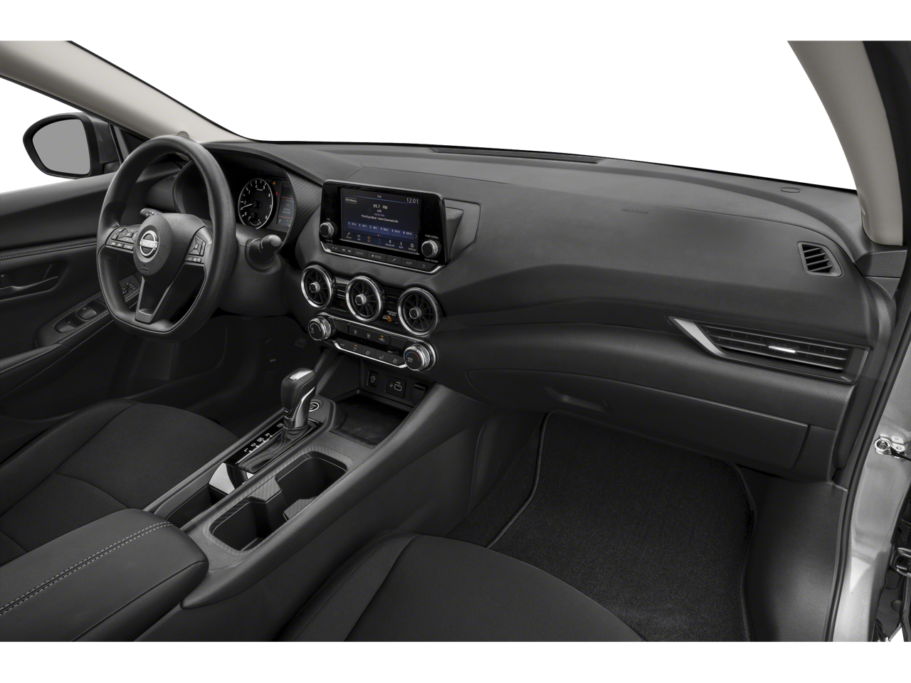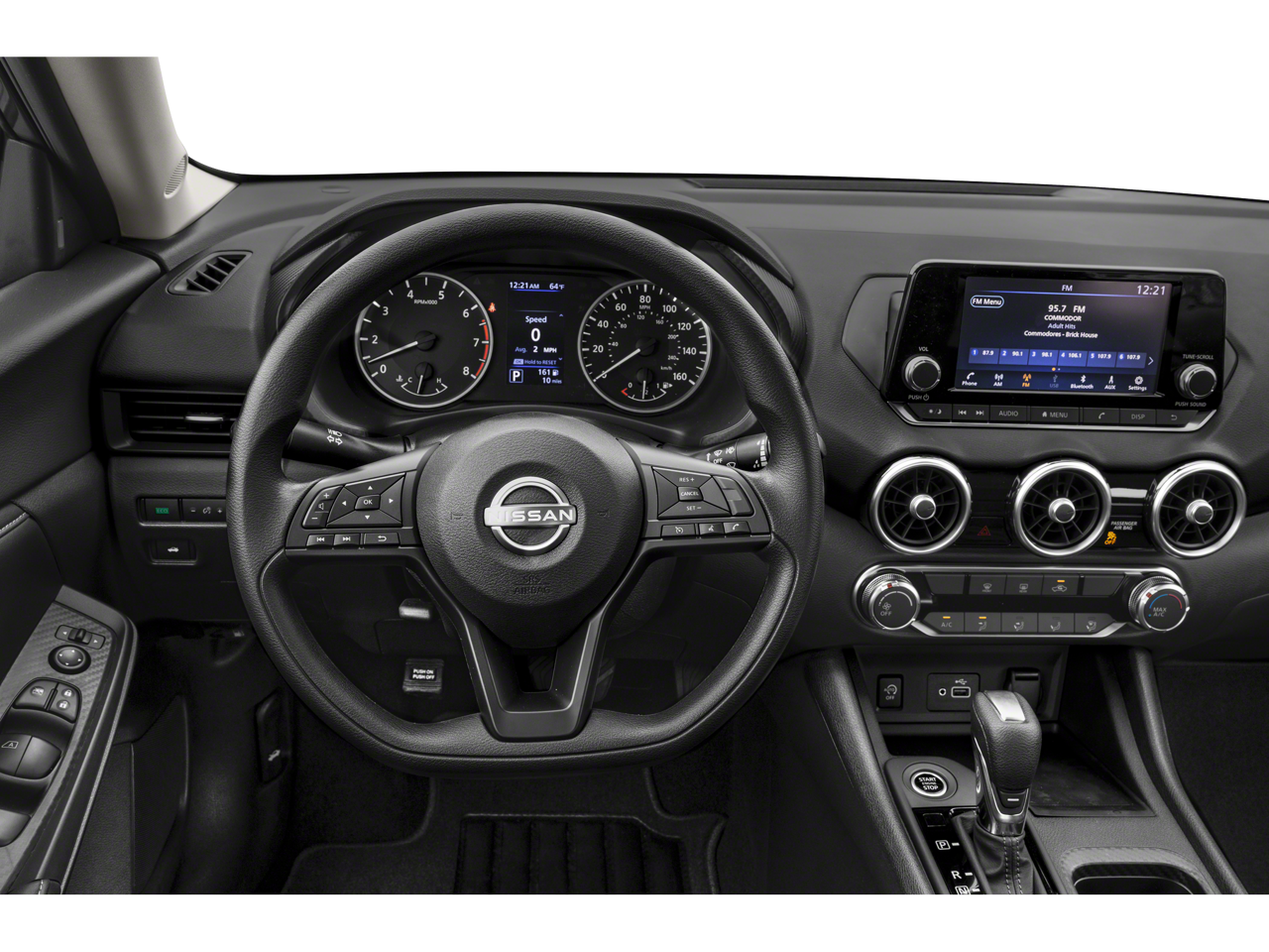16 Steel Wheels w/Full Wheel Covers, 4 Speakers, ABS brakes, Air Conditioning, AM/FM radio, Auto High-beam Headlights, Blind Spot Warning, Body Colored Splash Guards (4-Piece), Brake assist, Bumpers: body-color, Carpeted Floor Mats w/Trunk Mat, Clear Rear Bumper Protector, Cloth Seat Trim, Delay-off headlights, Driver door bin, Driver vanity mirror, Dual front impact airbags, Dual front side impact airbags, Electronic Stability Control, Four wheel independent suspension, Front anti-roll bar, Front Bucket Seats, Front Center Armrest, Front reading lights, Fully automatic headlights, Illuminated entry, Knee airbag, Low tire pressure warning, NissanConnect featuring Apple CarPlay and Android Auto, Occupant sensing airbag, Outside temperature display, Overhead airbag, Overhead console, Panic alarm, Passenger door bin, Passenger vanity mirror, Power door mirrors, Power steering, Power windows, Radio data system, Radio: AM/FM w/RDS/MP3/Aux-In, Rear anti-roll bar, Rear Parking Sensors, Rear side impact airbag, Rear window defroster, Remote keyless entry, Speed control, Speed-sensing steering, Split folding rear seat, Steering wheel mounted audio controls, Tachometer, Telescoping steering wheel, Tilt steering wheel, Traction control, Trip computer, Variably intermittent wipers.
