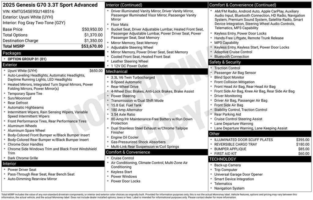 - Vehicle Name: Genesis G70