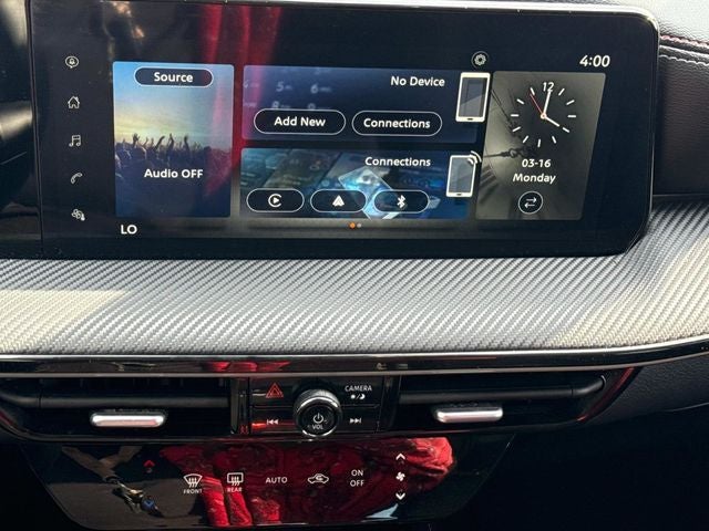 - Radio: AM/FM Audio System -inc: 12.3 color touchscreen display w/6 speakers, Bluetooth® hands-free phone system, streaming audio via Bluetooth®, audio and Bluetooth® steering wheel switches, USB C (data and charge) (front), rear USB type C port (2), NissanConnect featuring wireless Apple CarPlay, wireless Android Auto, Siri eyes free, SiriusXM satellite radio w/advanced auto features and hands-free text messaging assistant