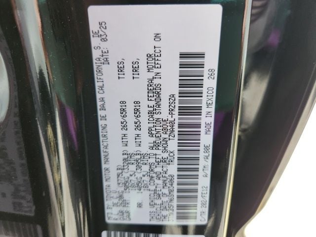 Black 2025 Toyota Tacoma TRD Sport RWD 8-Speed Automatic 2.4L 4-Cylinder ABS brakes, Alloy wheels, Electronic Stability Control, Heated door mirrors, Illuminated entry, Low tire pressure warning, Remote keyless entry, Traction control.