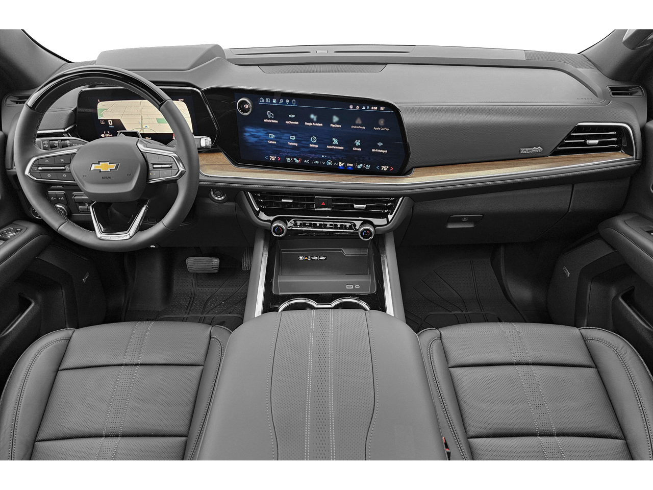 Polar White Tricoat 2026 Chevrolet Tahoe High Country 3LZ 4WD 10-Speed Automatic with Overdrive EcoTec3 6.2L V8 WE DELIVER ANYWHERE, 4WD, Black Leather, 15 Diagonal Multi-Color Head-Up Display, 1st and 2nd Row Color-Keyed Carpeted Floor Mats, 3-Spoke Wrapped Steering Wheel, 3rd Row 60/40 Power-Folding Split-Bench Seat, Bose 10-Speaker Centerpoint Surround Audio System Feature, Bright Front and Rear Door Sill Plates, Chrome Door Handles with Body-Color Strip, Color-Keyed Carpeting Floor Covering, Dual Exhaust System, Floor Console, Front Bucket Seats, Front LED Fog Lamps, Frontal Driver and Outboard Passenger Airbags, Heated 2nd Row Outboard Seats, Heated Steering Wheel, Inside Rearview Auo-Dimming Rear Camera Mirror, Interior Camera, Key Card, LED Headlamps with LED Daytime Running Lamps, LED Tail Lamps, Magnetic Ride Control Suspension, Memory Settings, Outside Heated Power-Adjustable Mirrors, Power Release 2nd Row Bucket Seats, Power Tilt and Telescopic Steering Column, Preferred Equipment Group 3LZ, Rear Power Liftgate, Remote Start, SiriusXM with 360L Trial Subscription, Universal Home Remote, Wheels: 22 x 9 Bright Machined Aluminum, Wireless Phone Charging, 10 Speakers, 3.23 Rear Axle Ratio, 3rd row seats: split-bench, 4-Way Power Driver Lumbar Seat Adjuster, 4-Way Power Front Passenger Lumbar Seat Adjuster, 4-Wheel Disc Brakes, 8-Way Power Driver Seat Adjuster, 8-Way Power Front Passenger Seat Adjuster, ABS brakes, Adaptive suspension, Air Conditioning, Alloy wheels, AM/FM radio: SiriusXM with 360L, Apple CarPlay/Android Auto, Auto High-beam Headlights, Auto-dimming door mirrors, Auto-dimming Rear-View mirror, Auto-leveling suspension, Automatic temperature control, Brake assist, Bumpers: body-color, Compass, Delay-off headlights, Driver and Front Passenger Heated and Ventilated Seats, Driver door bin, Driver vanity mirror, Dual front impact airbags, Dual front side impact airbags, Electronic Stability Control, Emergency communication system: OnStar and Chevrolet connected services capable, Exterior Parking Camera Rear, Four wheel independent suspension, Front anti-roll bar, Front Center Armrest, Front dual zone A/C, Front fog lights, Front reading lights, Fully automatic headlights, Garage door transmitter, Heads-Up Display, Heated door mirrors, Heated Driver and Front Passenger Seats, Heated front seats, Heated rear seats, Heated steering wheel, Illuminated entry, Low tire pressure warning, Memory seat, Navigation system: Google built-in compatibility (select service plan required, terms and limitations apply), Occupant sensing airbag, Outside temperature display, Overhead airbag, Overhead console, Panic alarm, Passenger door bin, Passenger vanity mirror, Perforated Leather Seat Trim, Power door mirrors, Power driver seat, Power Liftgate, Power passenger seat, Power steering, Power windows, Premium audio system: Chevrolet Infotainment 3 Premium, Radio data system, Radio: 17.7 Diagonal Advanced Color LCD Display, Rain sensing wipers, Rear air conditioning, Rear anti-roll bar, Rear reading lights, Rear window defroster, Rear window wiper, Remote keyless entry, Security system, Set of 4 Wheel Locks, Speed control, Speed-sensing steering, Split folding rear seat, Spoiler, Steering wheel memory, Steering wheel mounted audio controls, Tachometer, Telescoping steering wheel, Tilt steering wheel, Traction control, Trip computer, Turn signal indicator mirrors, Variably intermittent wipers, Ventilated front seats, Voltmeter, 4WD, Black Leather, 15 Diagonal Multi-Color Head-Up Display, 1st and 2nd Row Color-Keyed Carpeted Floor Mats, 3-Spoke Wrapped Steering Wheel, 3rd Row 60/40 Power-Folding Split-Bench Seat, Bose 10-Speaker Centerpoint Surround Audio System Feature, Bright Front and Rear Door Sill Plates, Chrome Door Handles with Body-Color Strip, Color-Keyed Carpeting Floor Covering, Dual Exhaust System, Floor Console, Front Bucket Seats, Front LED F